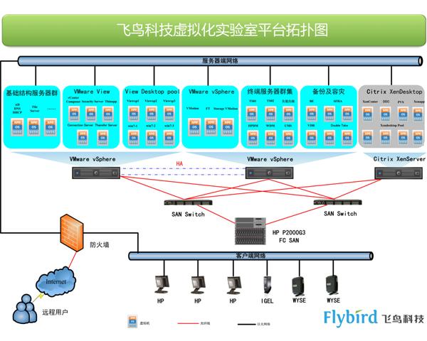 飞鸟科技虚拟化实验室作为虚拟化方案演示中心,实验室搭建的完备虚拟化环境,可是准确的模拟出各种情况下的应用效果。在虚拟化实验室的基础上,为客户提供全面的虚拟化方案定制服务,并配合相应的可行性论证以及方案的稳定性测试。